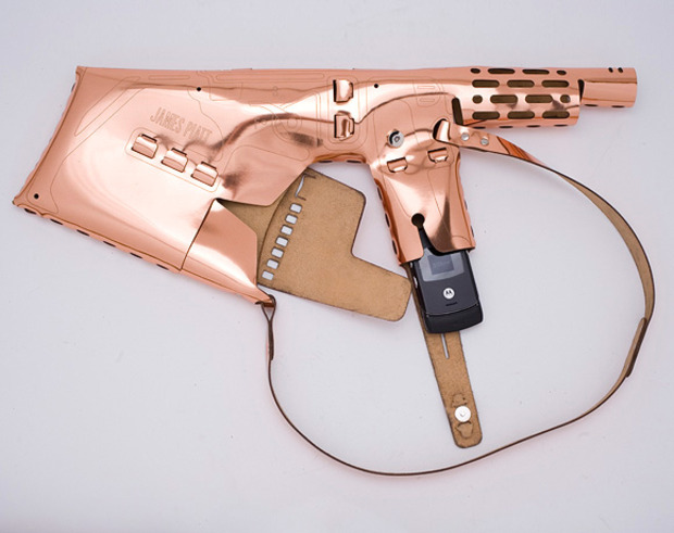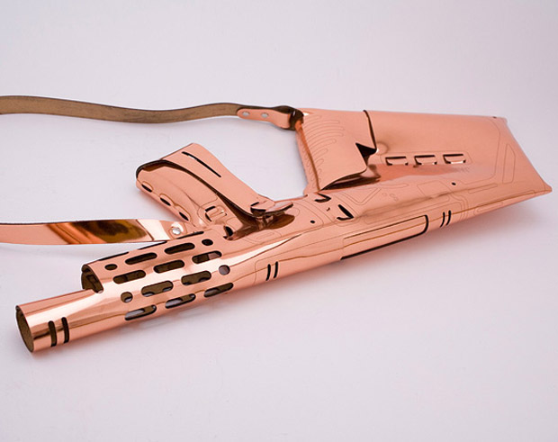 The James Piatt’s Pursuader Bag($579) features a cellphone compartment in the clip. Constructed by interlocking laser cut leather this handbag has no stitching.